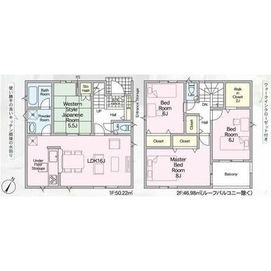 号棟番号:2号棟 物面積に別途ルーフバルコニー約4.86平米有り |