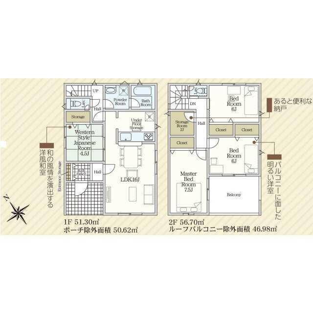 号棟番号:2号棟 2条区域 特定都市河川流域 建物面積に別途ルーフバルコニー約9.72平米およびポーチの一部約0.68平米有り |