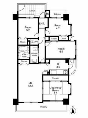 | 間取り(内訳) | 4LDK(LD12.2、K3.5、和6、洋6.4、5.2、4.7) | ||