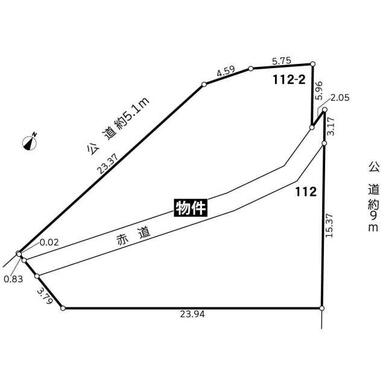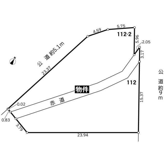 | 接道状況 | 角地:2方道路 北西5.1m 公道 接面23.3m 北東9.0m 公道 | 地目 | 宅地 |